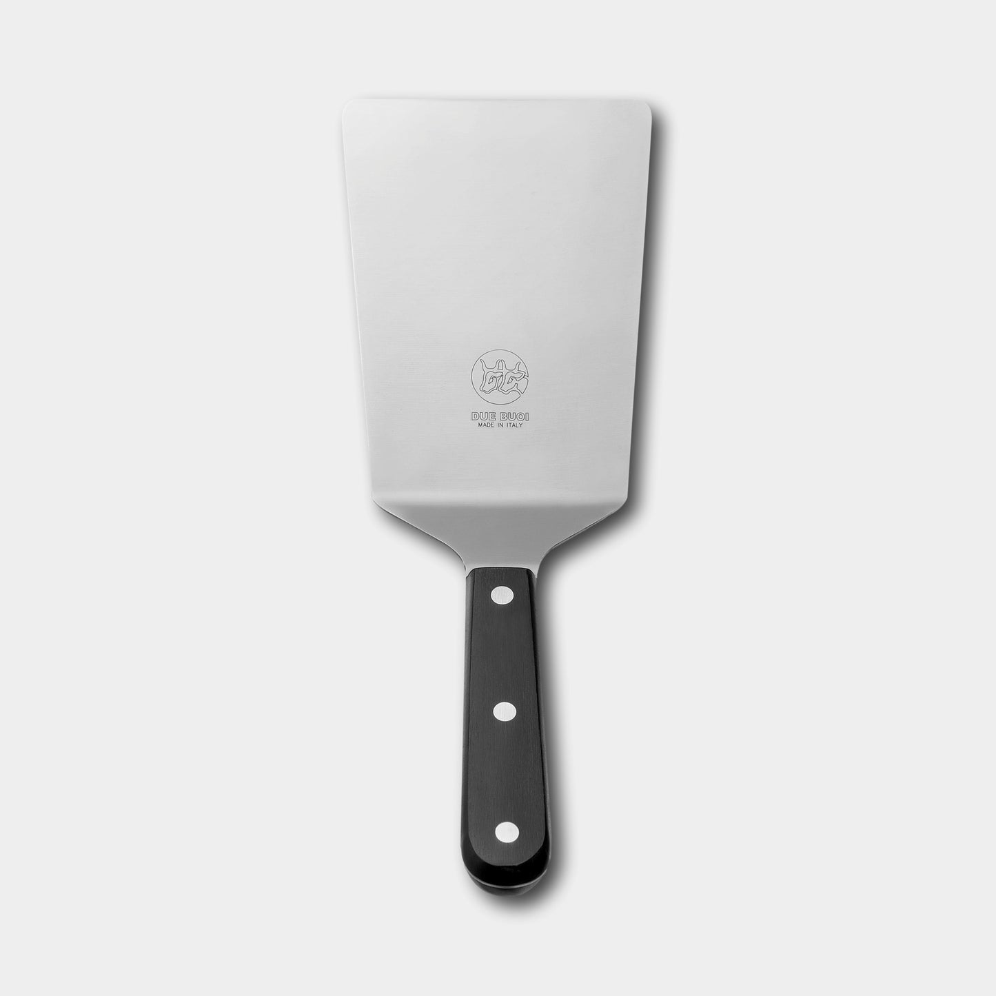 Both in summer and winter, enjoy your time at the griddle using our 100% Italian - made turner spatulas: grilling spatulas in various dimensions, all made with high quality AISI 420A stainless-steel blade and finished with triple riveted full tang handles in wood or polymer for perfect grip and balance. Our spatulas are available to buy individually or in sets, according to your tastes and needs. Placing an order on Due Buoi Spatula Store is easy and safe, and it will allow you to receive your new grill and BBQ spatulas delivered right at your doorstep, in time for your next BBQ day.